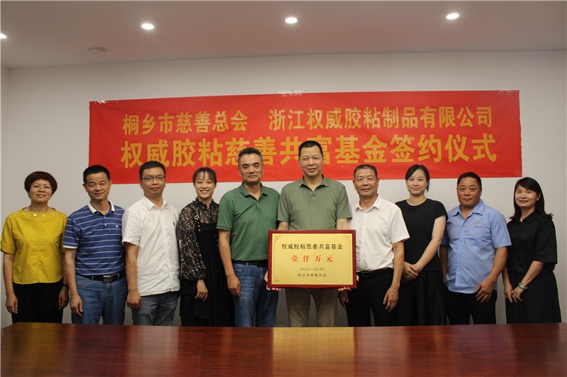 “權威膠粘慈善共富基金”采用留本用息形式,捐贈本金1000萬元留存于企業增值,每年的增值部分50萬元將全部捐贈給市慈善總會的慈善工作,為期5年,具體用于助困、助醫、助學、助孤老殘及突發性災難等的救助。